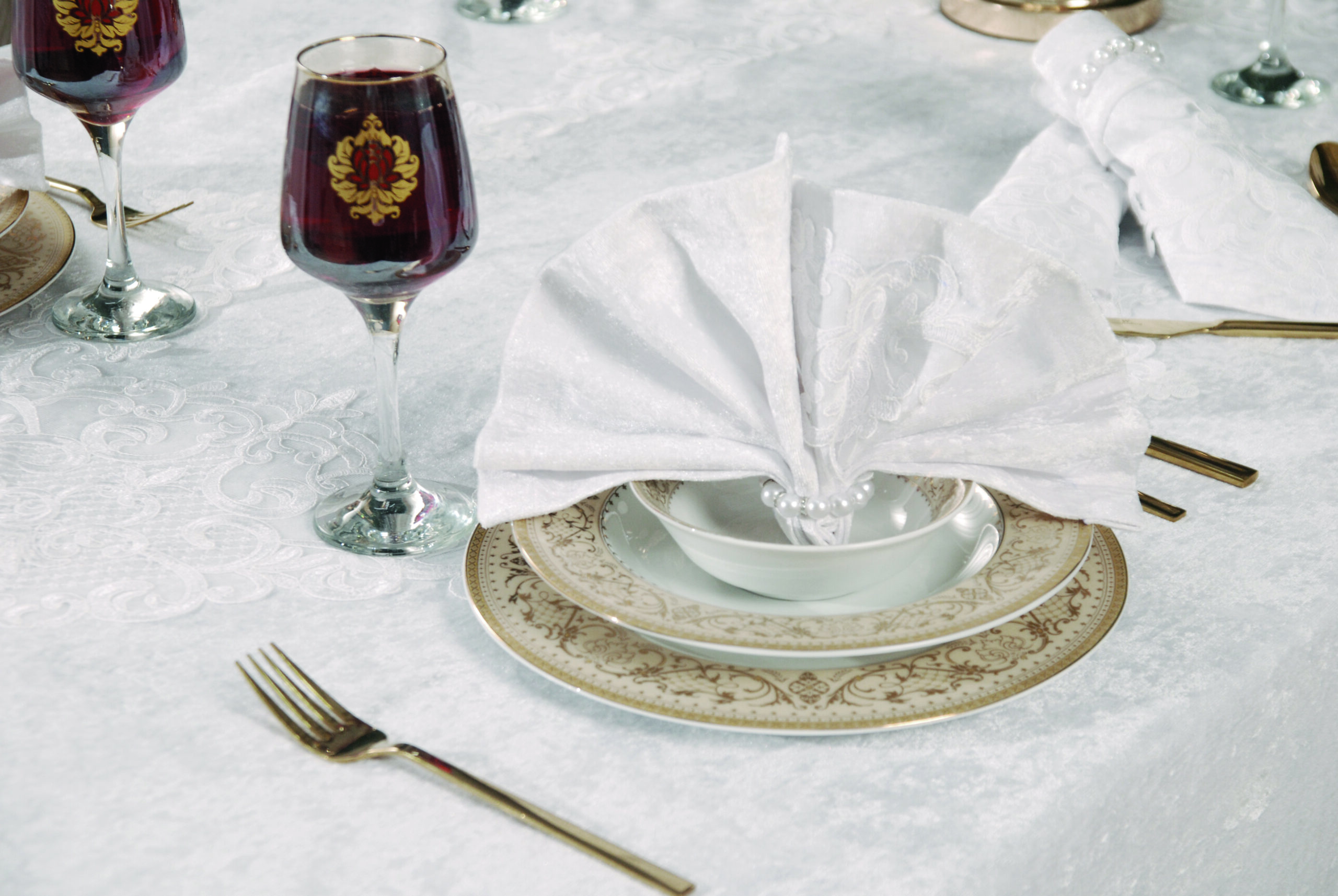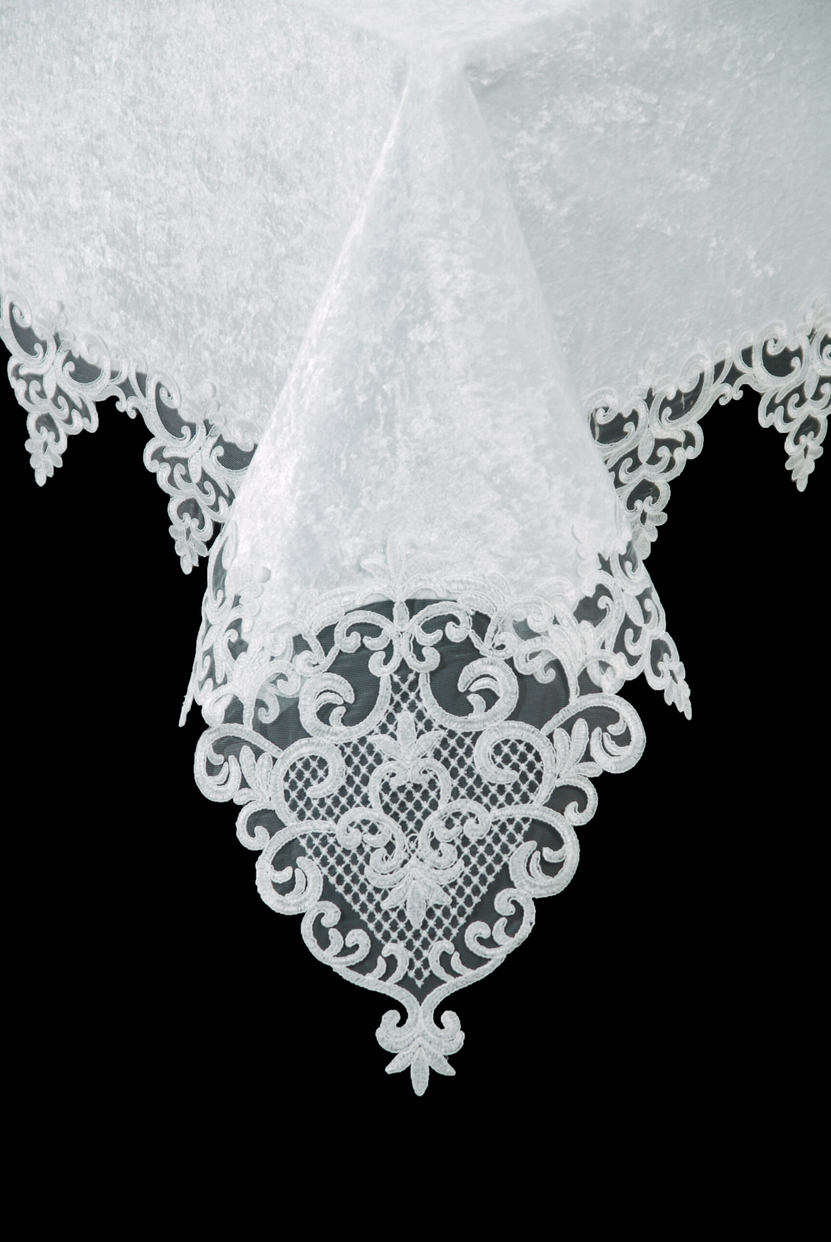 מסגרת התחרה העדינה שמקיפה את המפה מוסיפה טאצ' קלאסי ומרשים.